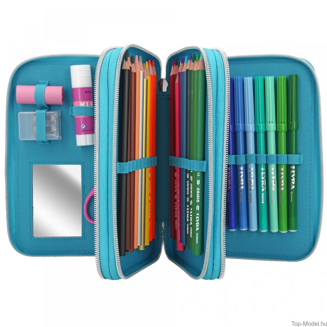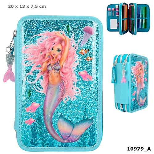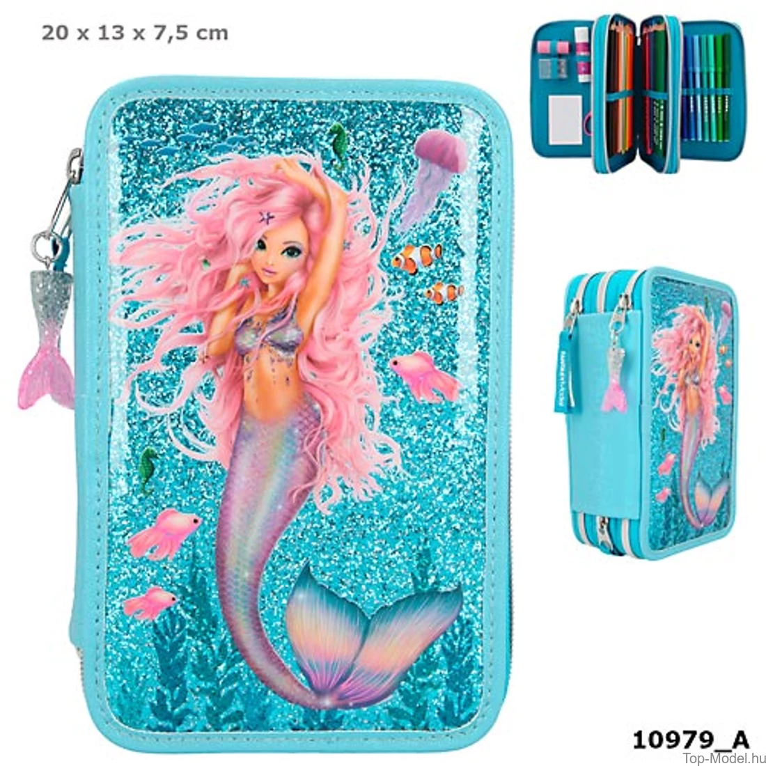Víz alatti álom rózsaszínben és türkizben! Ez a háromemeletes tolltartó színes hableány motívumával meghívja Önt egy varázslatos fantasy-világba! 18 filctoll és ceruzák, két ceruza, olló és még sok más! Anyaga 100% poliuretán, bélés 100% poliészter.