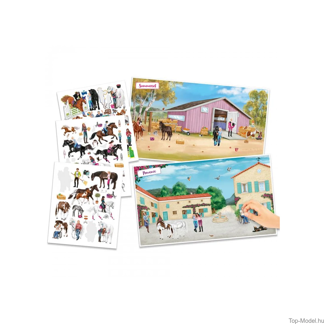 Különböző díszletek 32 oldalon várják a színezésüket és matricákkal való díszítést. Izgalmas kalandok Sienna és barátai számára, gyönyörű kiegészítők Miss Melody és a többi ló számára: kezdődjön a móka!