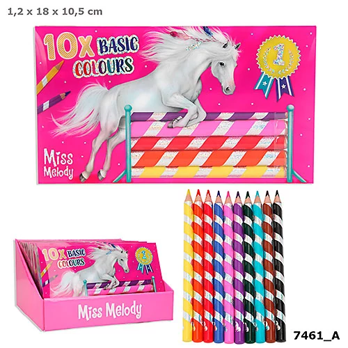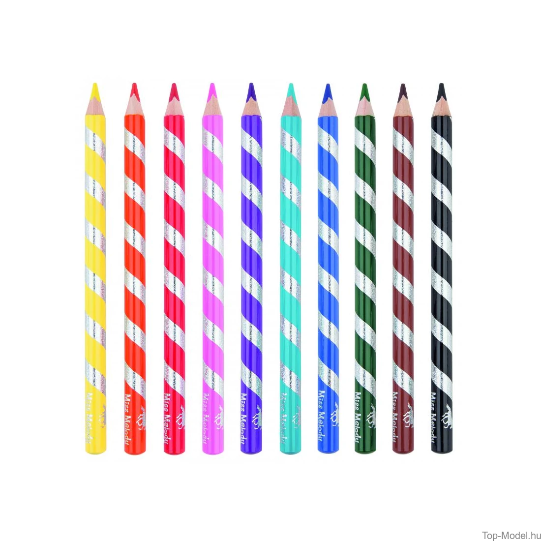 Merülés egy nagyon szép Miss Melody világba! A szuper lágy ceruzahegyeknek köszönhetően, a magas színvilág mellett ez a színes ceruzakészlet még szórakoztatóbbá teszi a kreativitást. Tíz színárnyalat (fekete, barna, zöld, rózsaszín, türkiz, kék, piros, lila, narancs és sárga) nem hagy semmit kivetnivalót maga után.