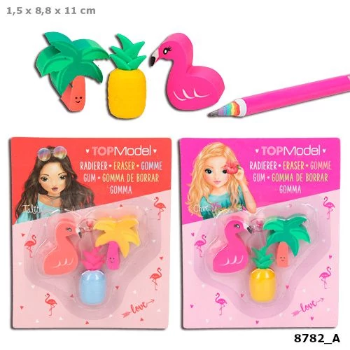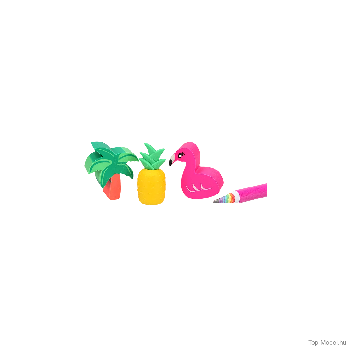 Trópusi radírszett, különböző radír figurákkal (tukán, ananász,pálmafa) , 2 féle dizájnnal.