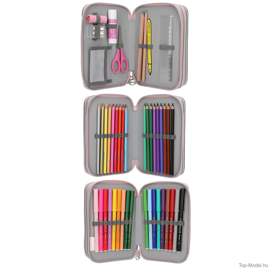 A táskához passzoló tolltartót választottuk, van benne minden ami egy iskolába kell. Igazán csajos tolltartó.