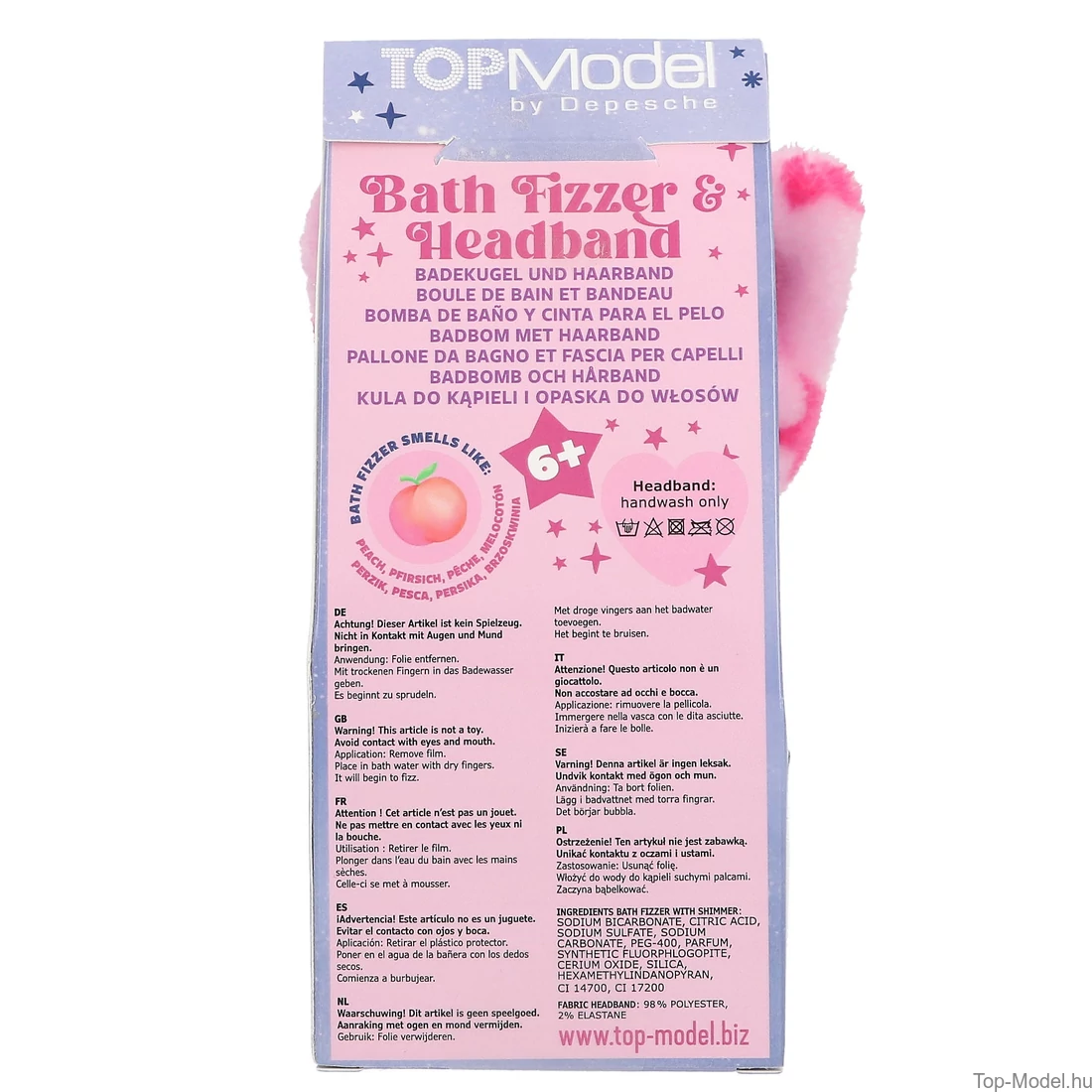 Őszibarack : Nátrium-hidrogén-karbonát, citromsav, nátrium-szulfát, nátrium-karbonát, PEG-400, illatanyag, szintetikus fluorofilopit, hexametil-lindanopirán, CI 14700, CI 17200, CI 77891