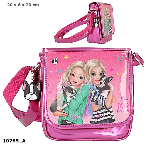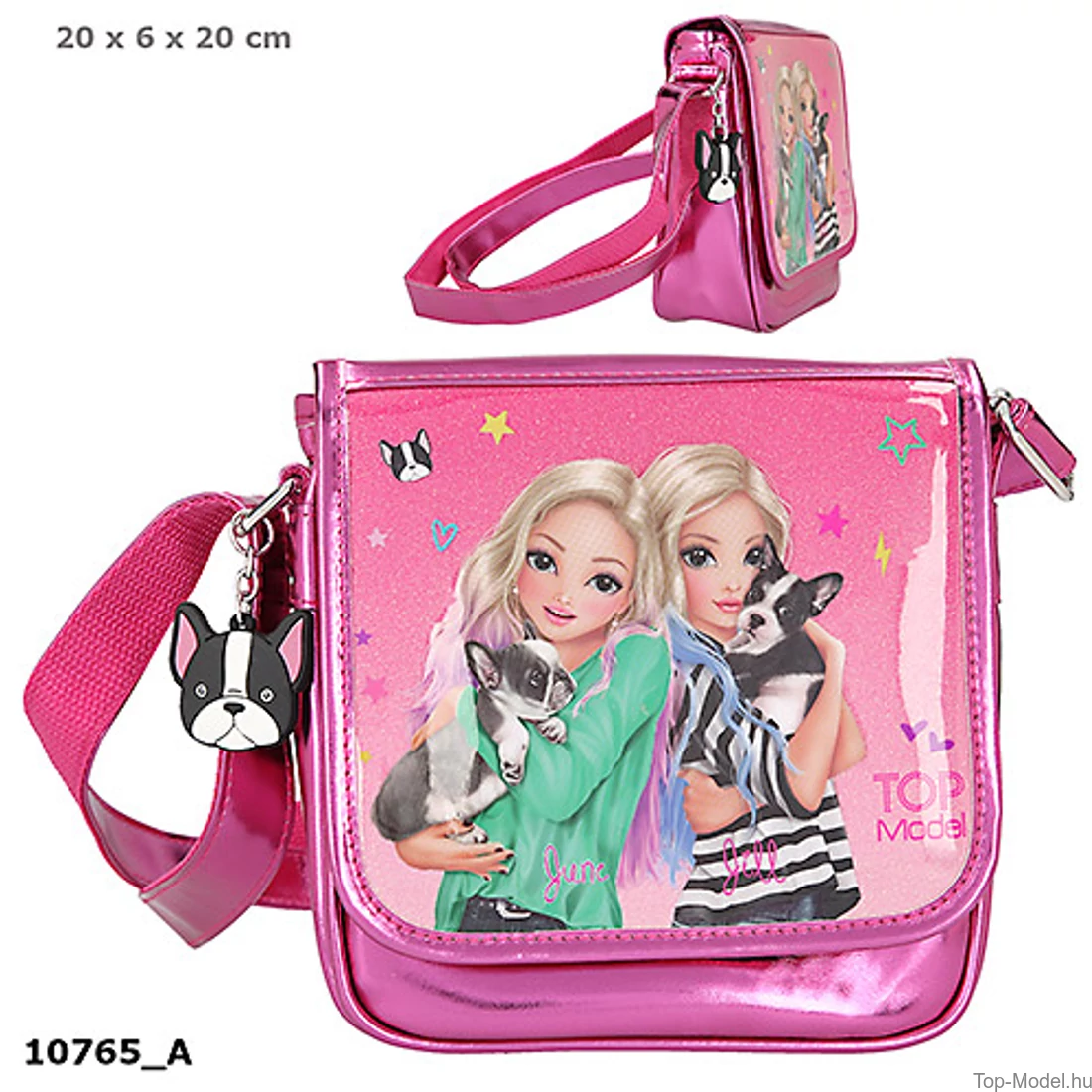 • Pink színű oldaltáska, elején Jane és Jill látható ölükben egy-egy kiskutyával