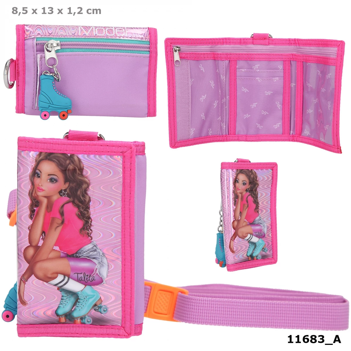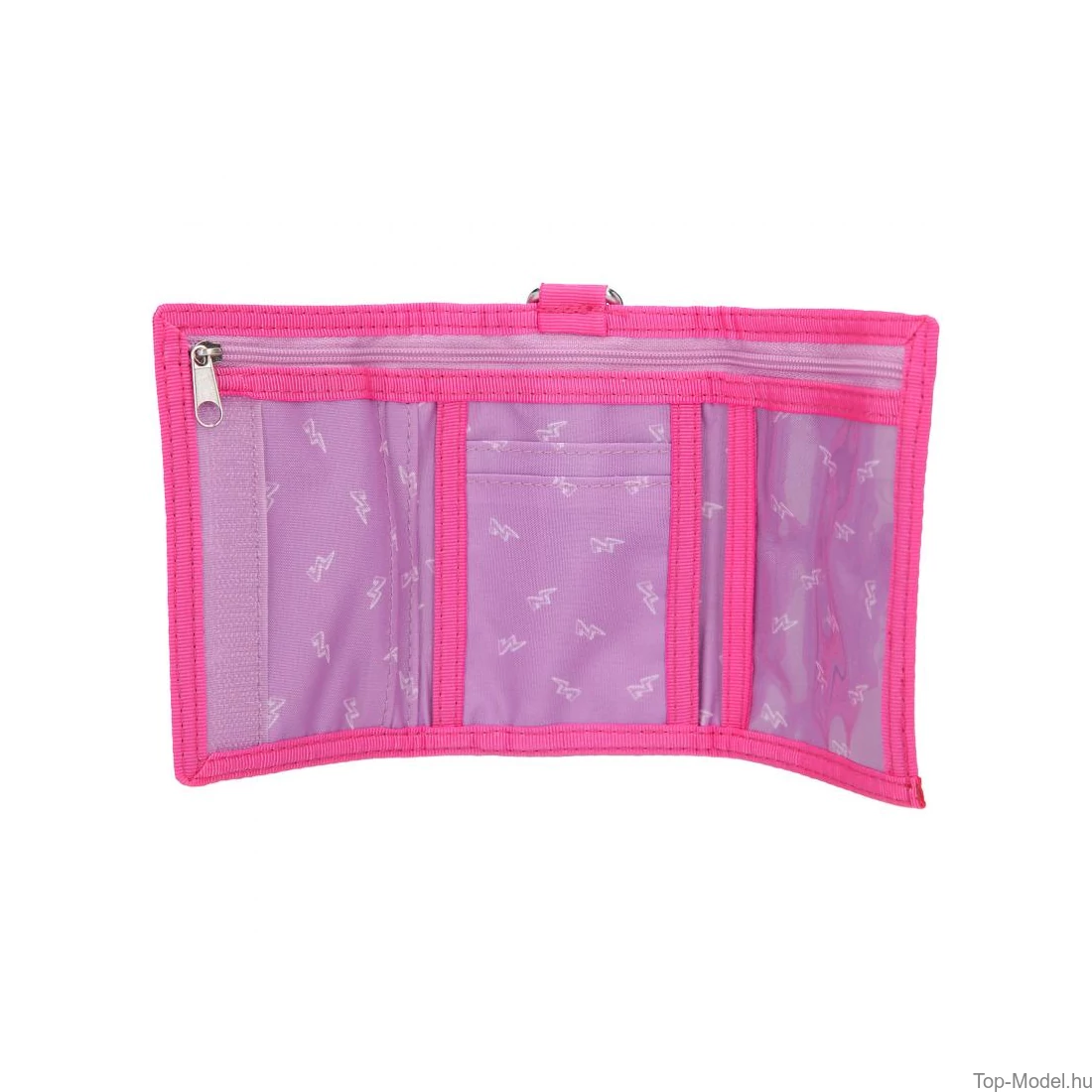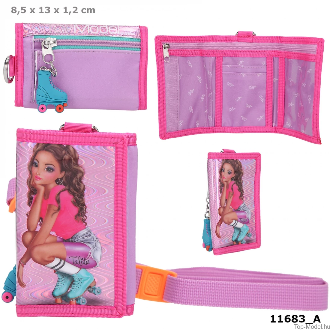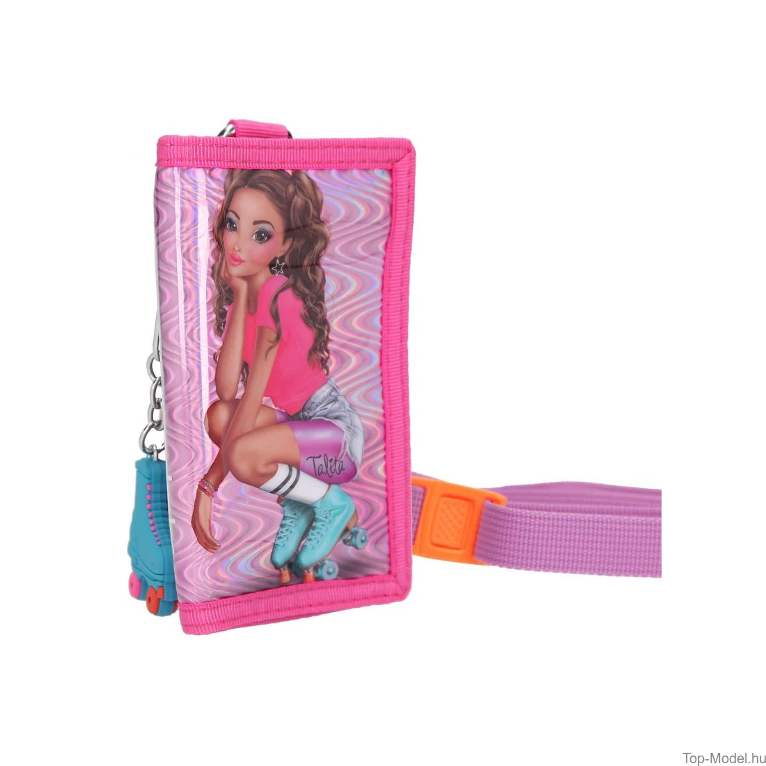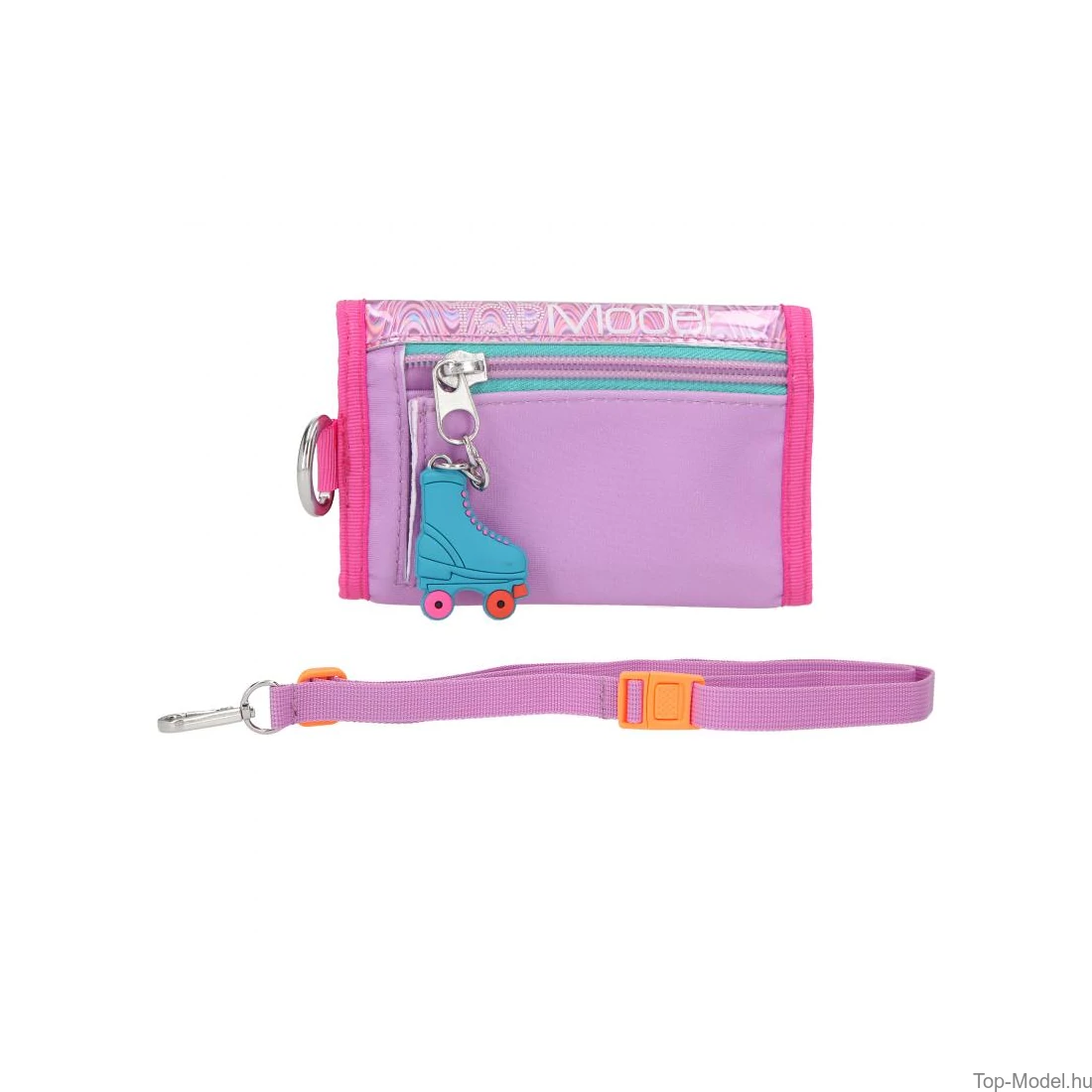 A Tiny Dancer dizájnsorozat nagyszerű rózsaszín, lila és türkiz árnyalatokkal, valamint szupertrendi, csillogó holo háttérrel rendelkezik. Az állítható hurkos pánttal ellátott pénztárca belül és hátul biztonságos cipzárral, névjegykártya-rekesszel és számos egyéb rekesszel rendelkezik. Nagyon aranyos: a görkorcsolya medál! Méretek: 8,5x12x1 cm; anyaga: 100 százalék PES, anyaga előlap: 100 százalék PVC
